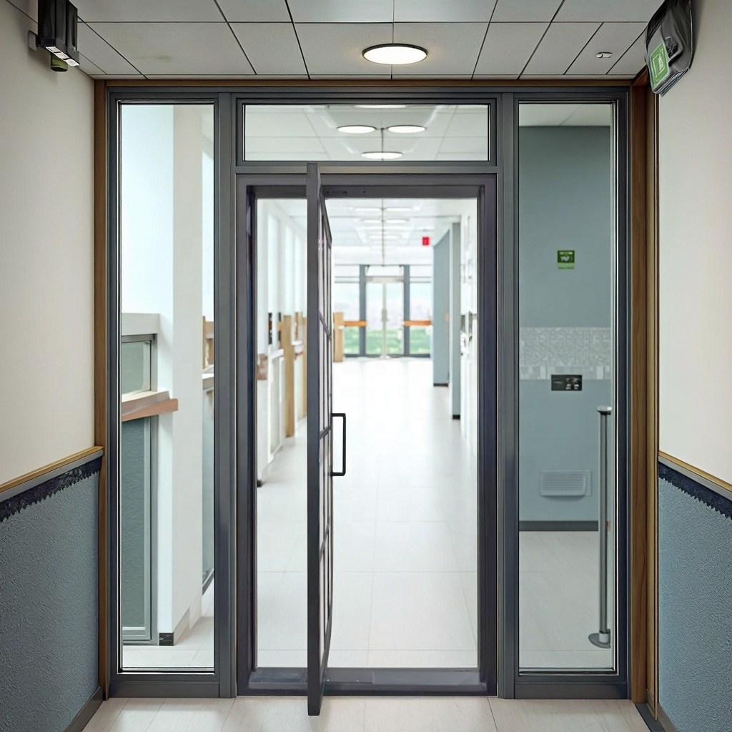 Double Steel Iron Security Door Openings Closures Traditional Minimalist Design for Entry Supermarket Hospital Fire Prevention
