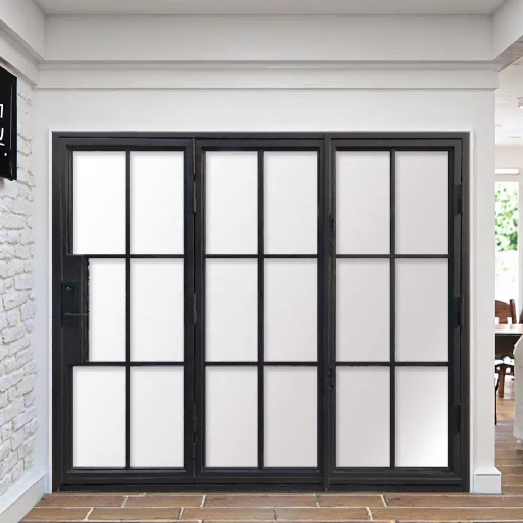 French Style Bi-Fold Iron Interior Entry Door Easy Foldable Windproof Finish CE Certified Glass Iron Sliding Bathroom Door Malls