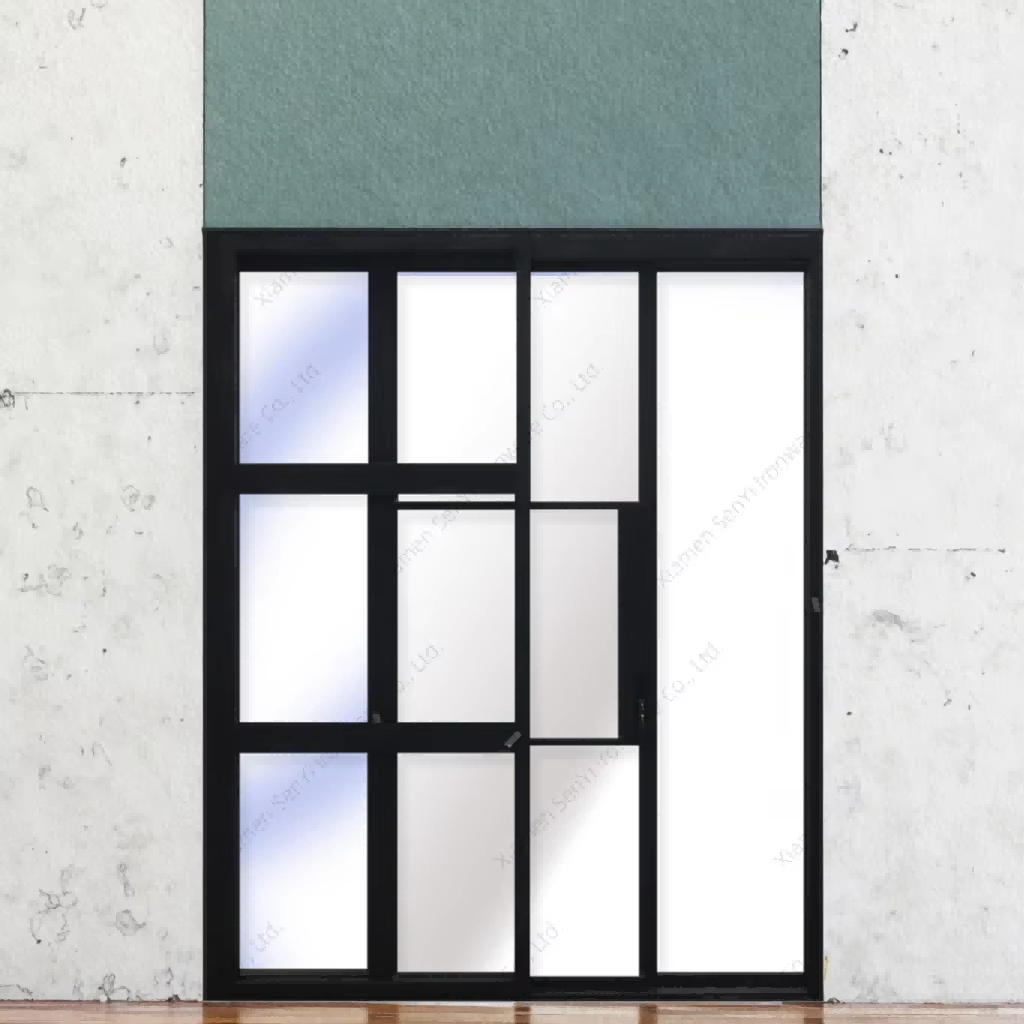| Product Name | Minimalist Wrought Iron Steel Panoramic Sliding Door Customizable Size with Matt Black Finish SY Interior |