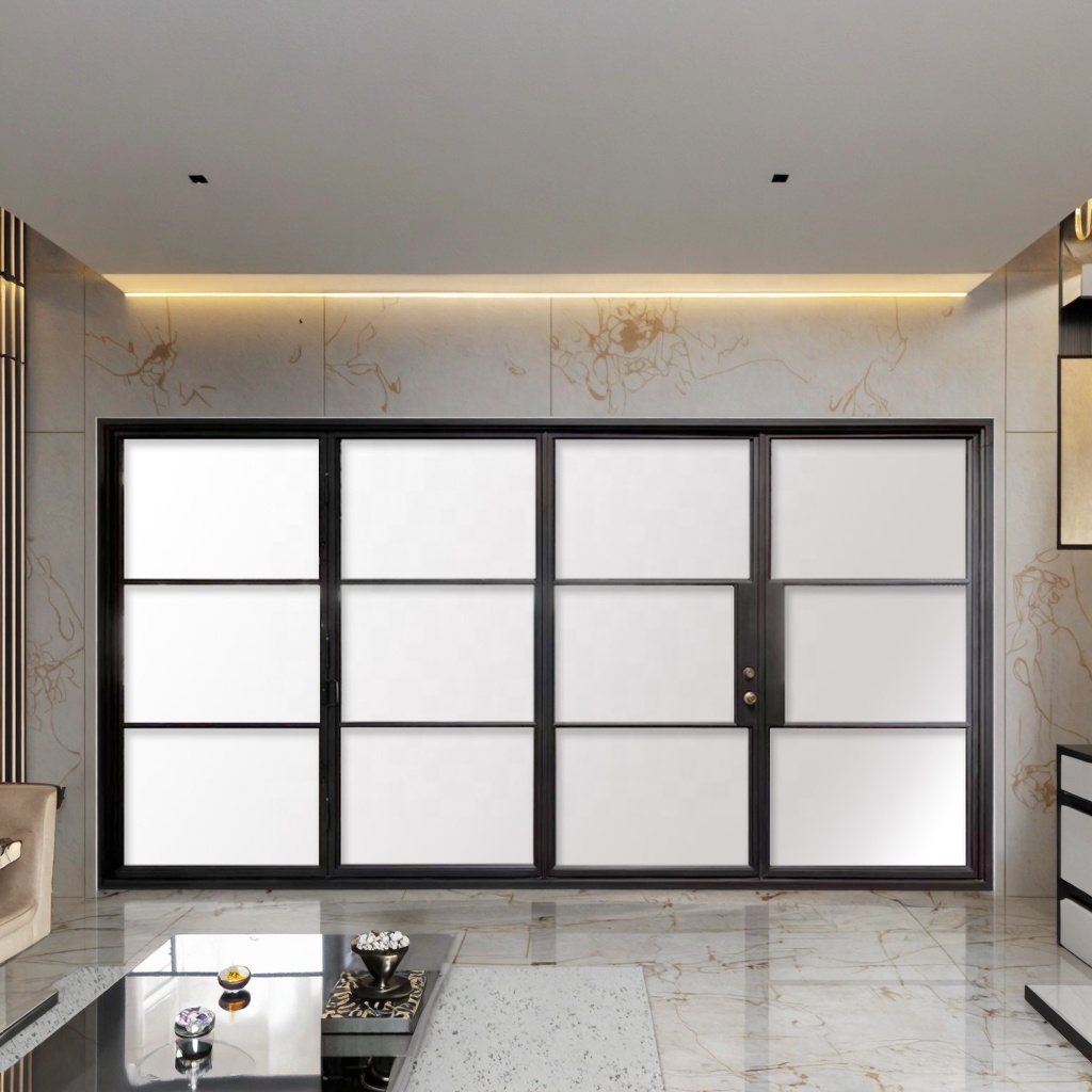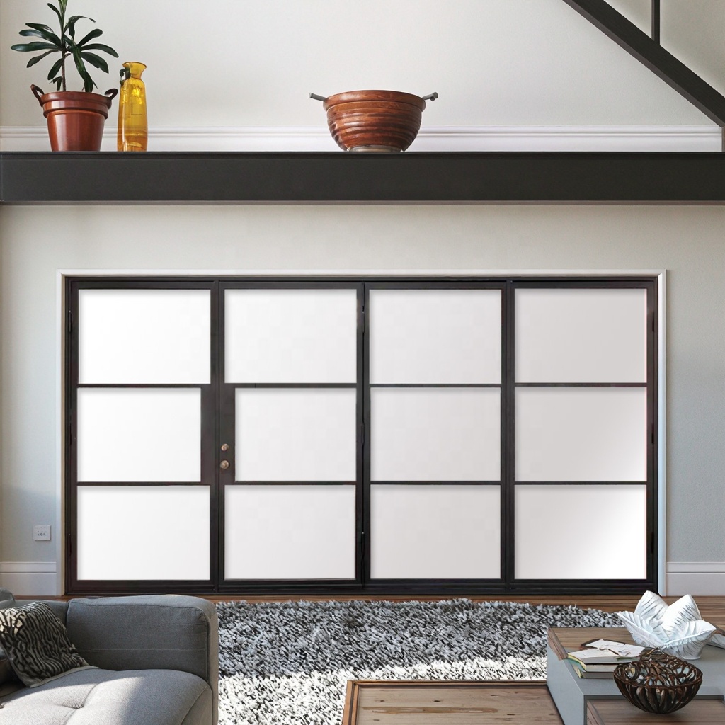 Modern Interior Bifolding Door Iron Sliding with Waterproof Graphic Design Elegant Glass Swing Decoration