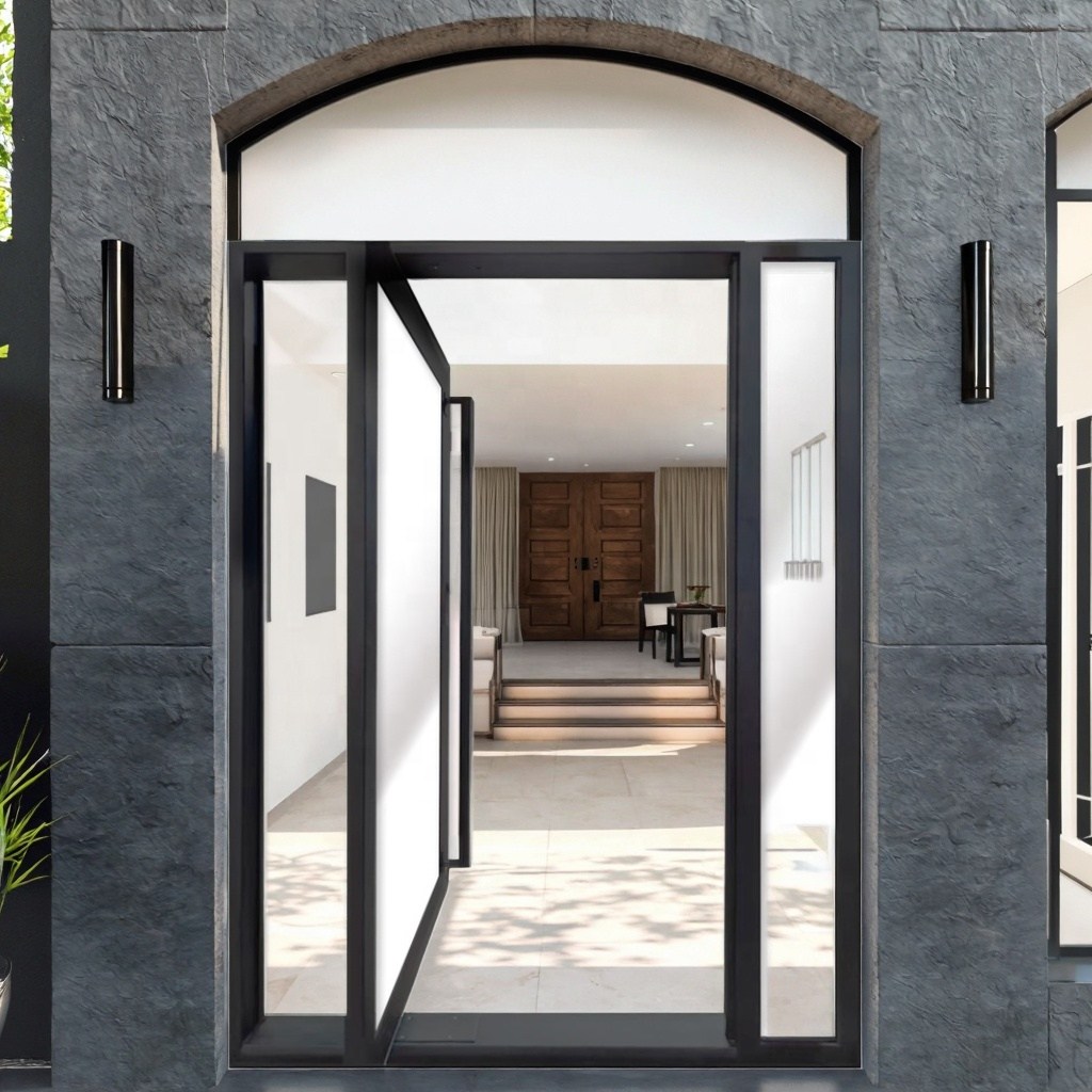 Product NameModern Stainless Steel Pivot Door with Wrought Iron Finished Surface Sound Insulation for Entry Front Entrance Villa Application