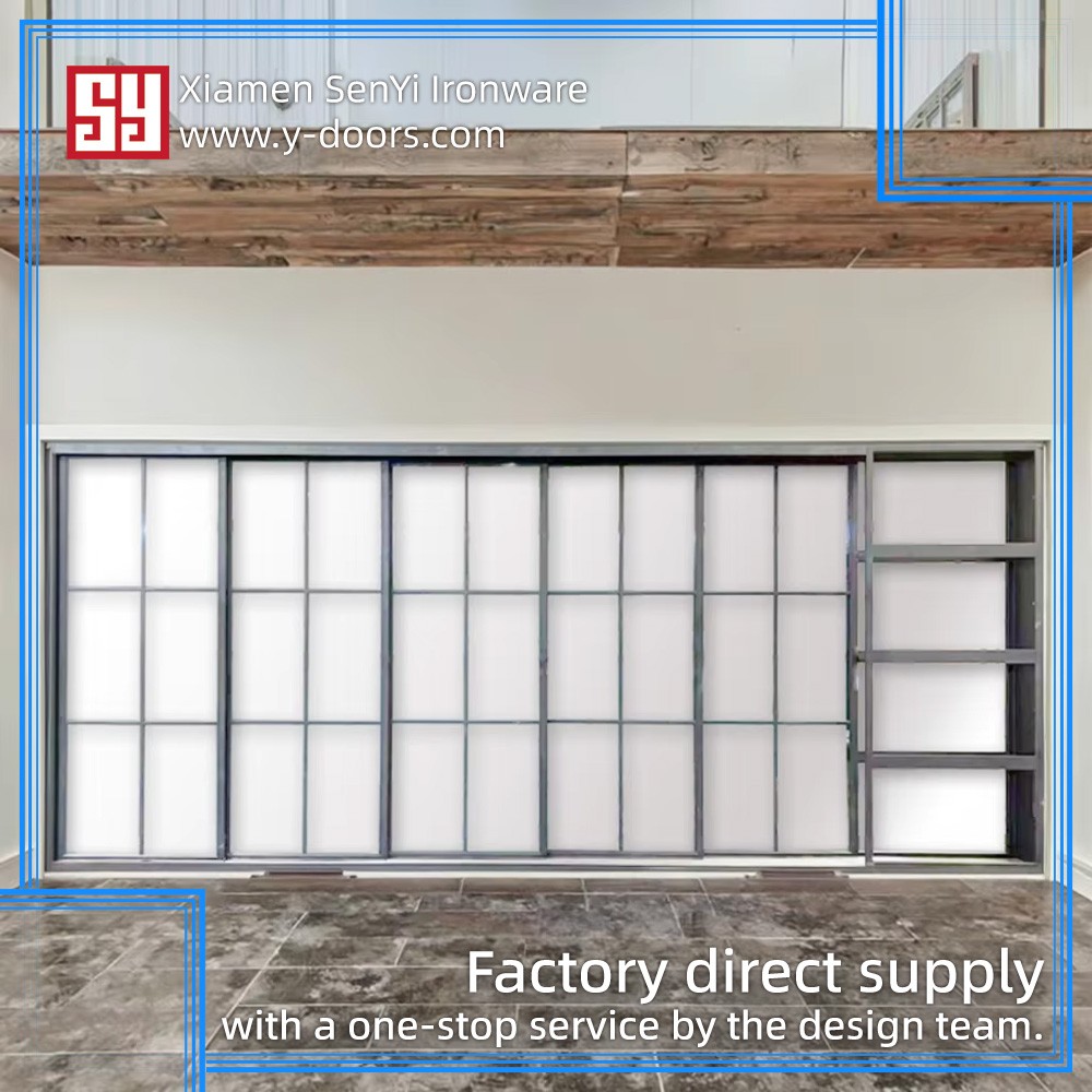 Modern Minimalist Sliding Entrance Door with Swing Style Fiberglass Glass for Private Interior or Exterior Security